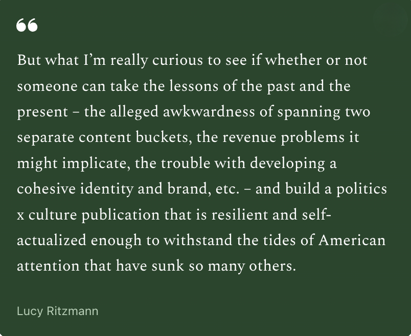 Just a reminder: every Tuesday and Friday, I’ll be in your inbox with the latest in politics, tech & social media, culture, and other relevant topics – and I’ll share some notes and tips on what I’m keeping my eye on.
